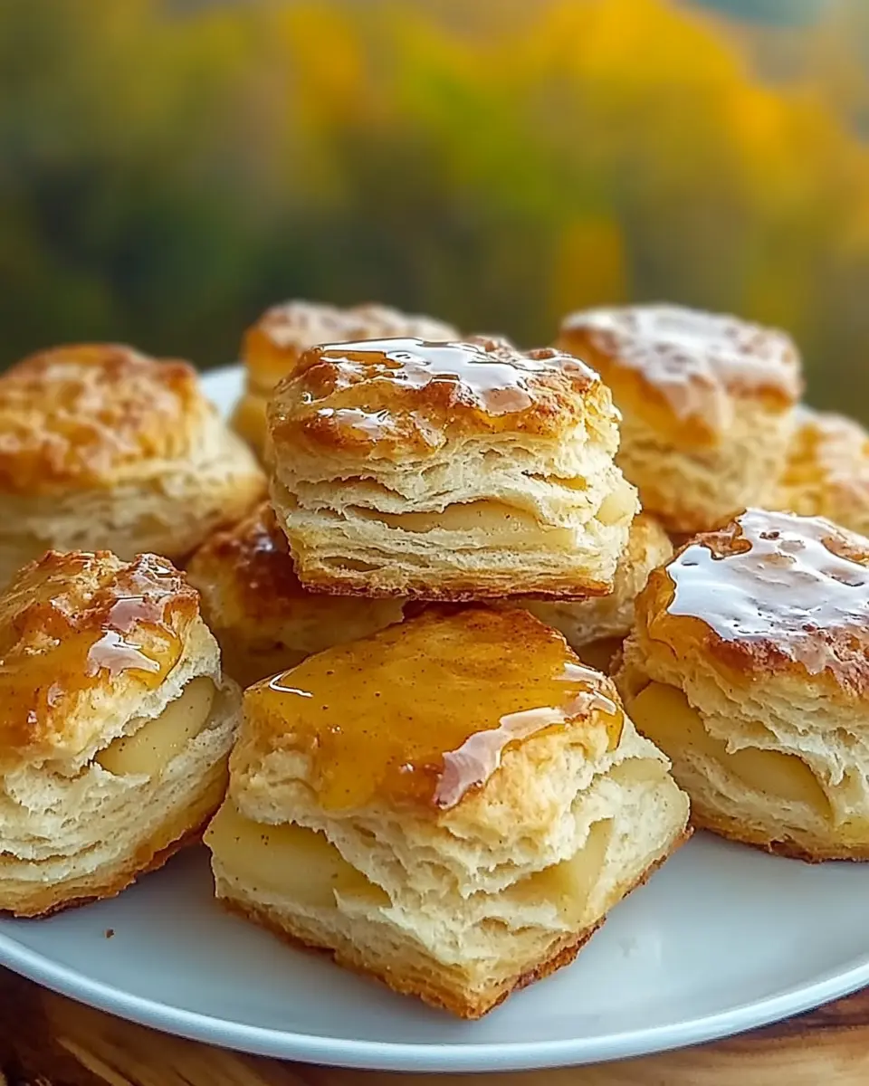 Delicious apple biscuits drizzled with a sweet honey butter glaze, perfect for breakfast or a snack.