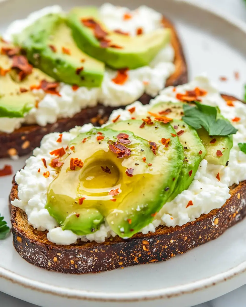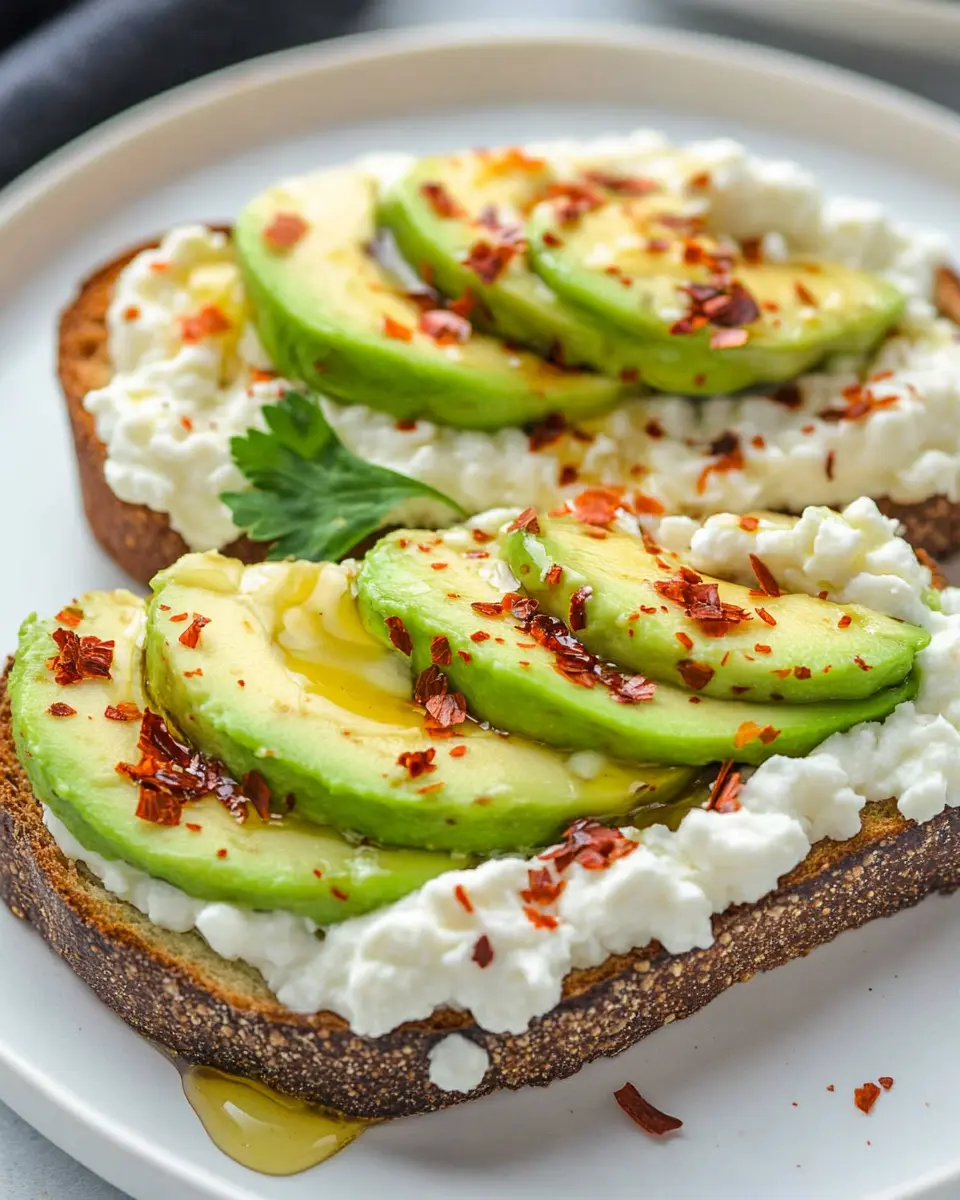 This Avocado Toast with Cottage Cheese & Hot Honey serves as a nutritious option, packing in approximately 300 calories per serving. Each slice contains about 12 grams of protein, 15 grams of fat—of which 4 grams are saturated—and 30 grams of carbohydrates, including 8 grams of dietary fiber. This balanced macronutrient profile not only keeps you satiated but also supports your overall health.