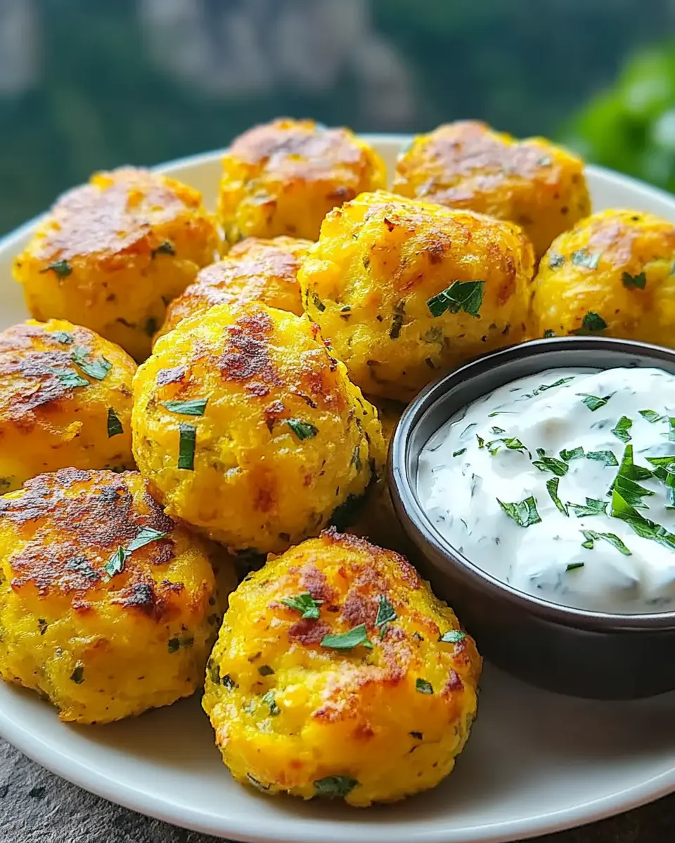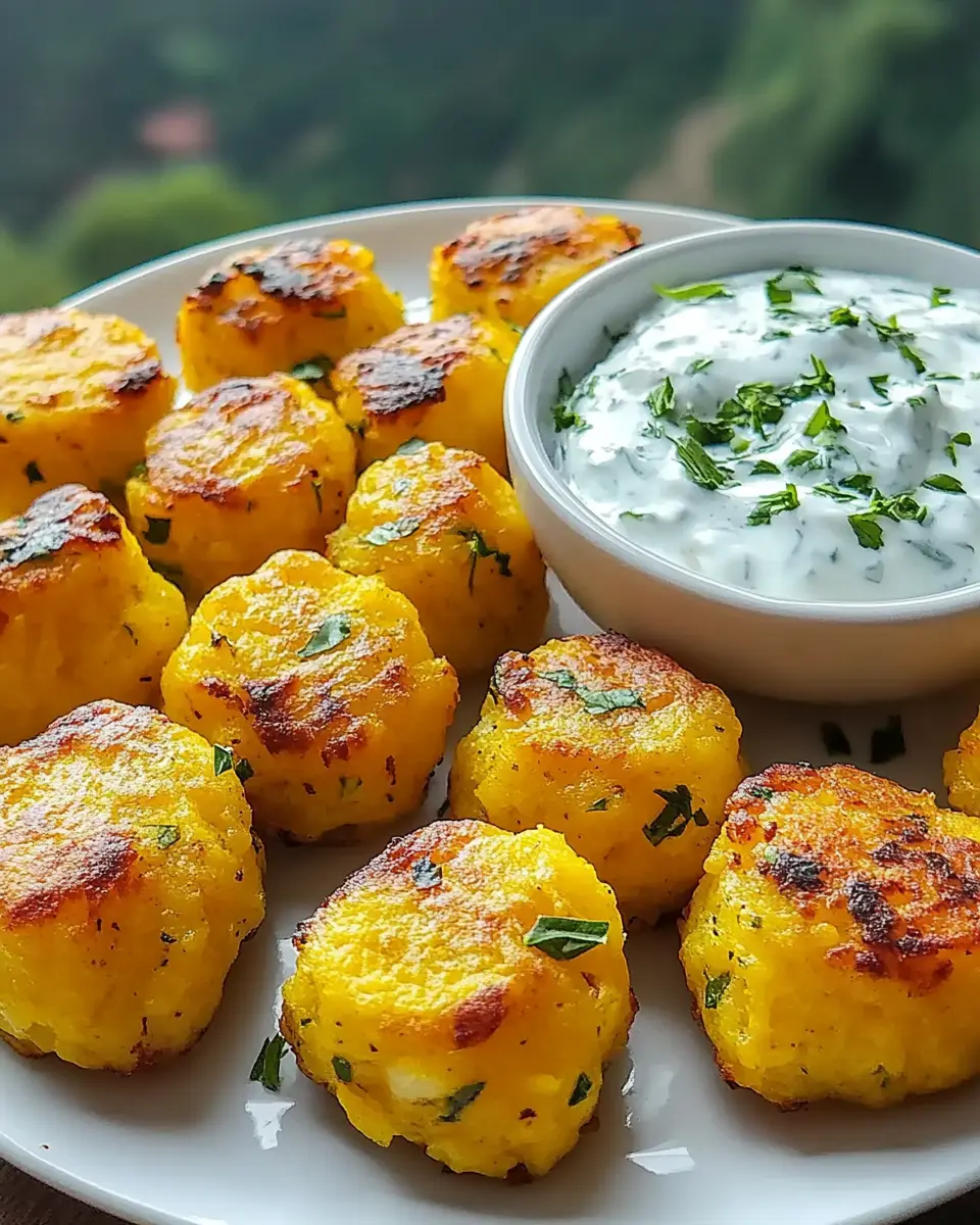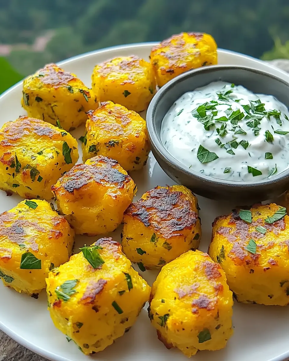 Each serving of Baked Yellow Squash Tots with Greek Yogurt Herb Dip contains approximately 150 calories, making them a light yet satisfying option for any meal or snack. The tots are packed with nutrients, thanks to the yellow squash, which provides vitamins A and C, and the Greek yogurt, a great source of protein and probiotics that support digestive health.