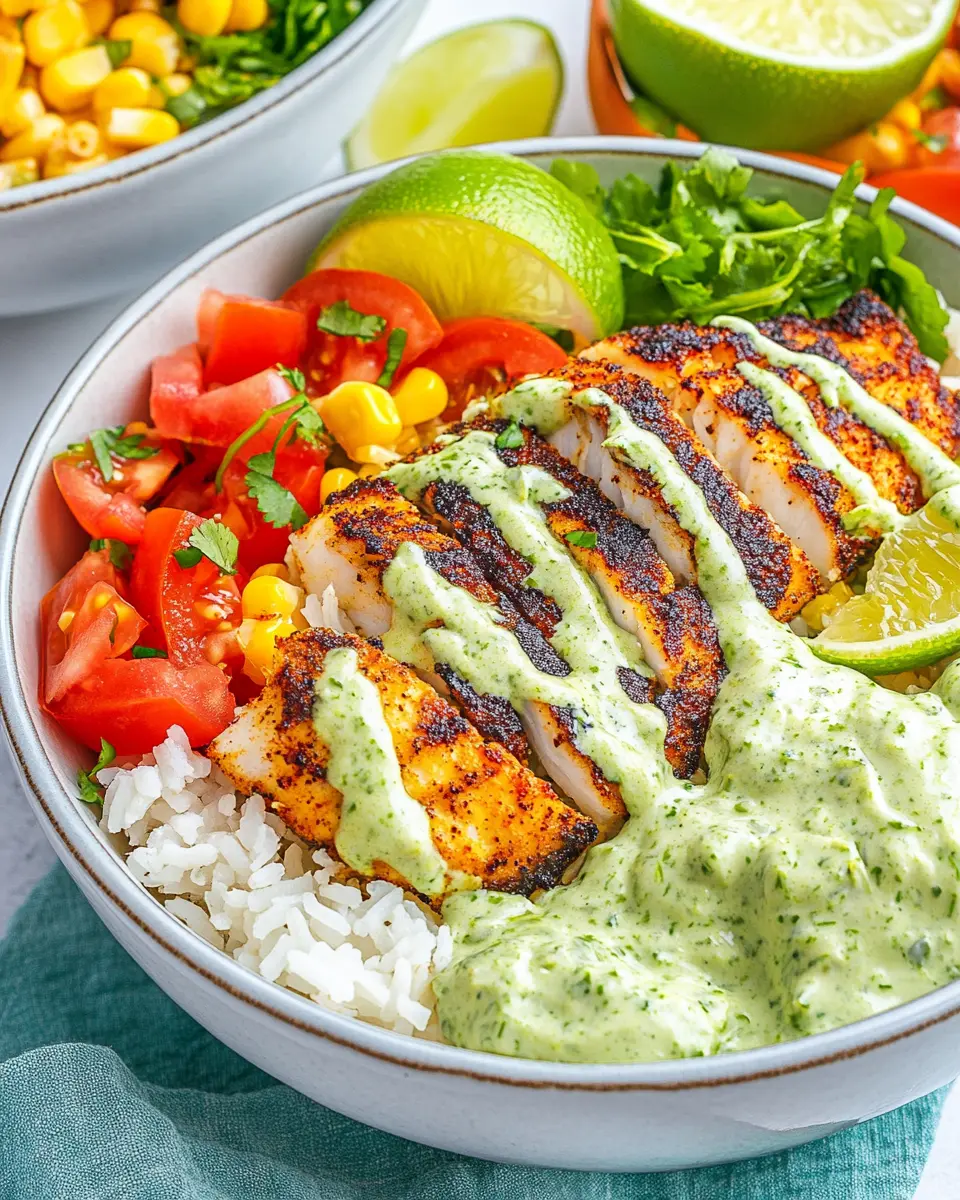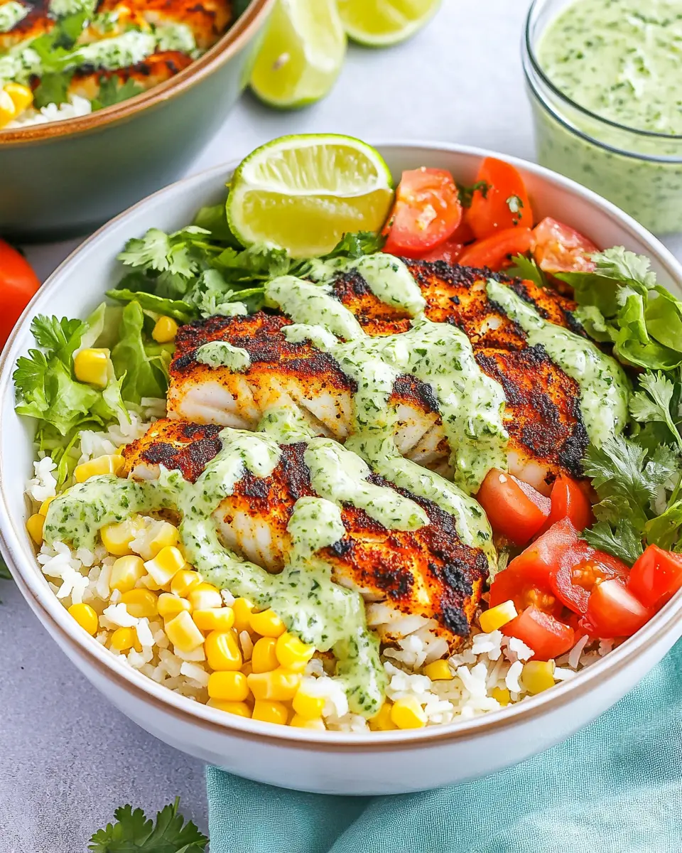 Introduction to Blackened Fish Taco Bowls With Cilantro Lime Sauce