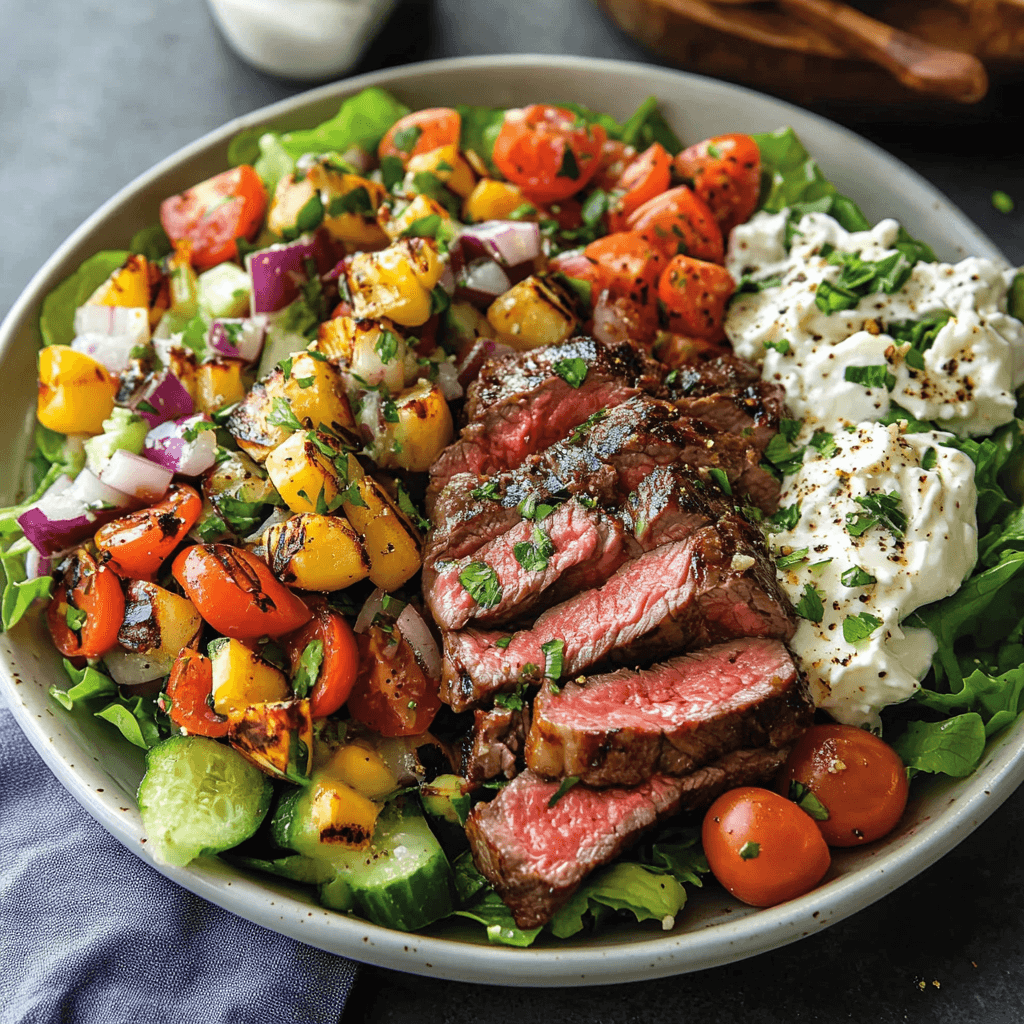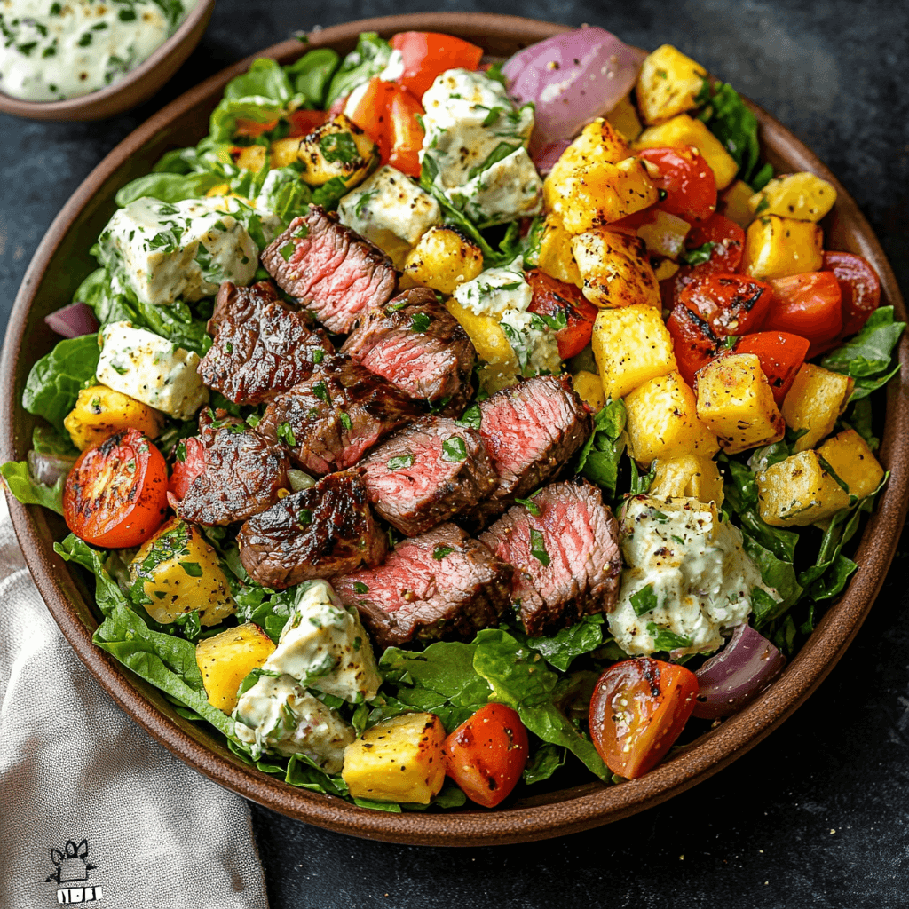- Vegetarian Salad: Omit the steak and add grilled halloumi cheese or chickpeas for protein.