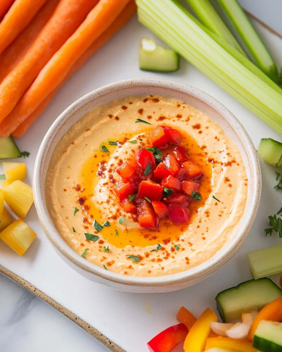 Cottage Cheese Roasted Red Pepper Dip is incredibly versatile and pairs wonderfully with a variety of snacks. For a crunchy contrast, serve it with pita chips, fresh vegetable sticks like carrots and celery, or even crispy tortilla chips. If you’re in the mood for something heartier, it also goes well with whole-grain crackers or toasted baguette slices. For drinks, consider pairing it with a crisp white wine, sparkling water with lemon, or even a light beer to complement the dip’s flavors.