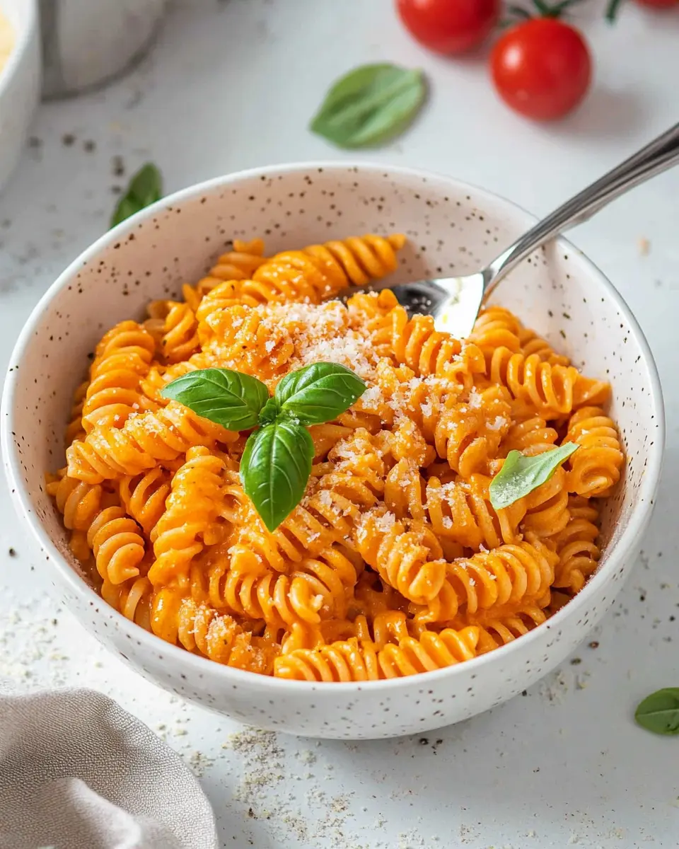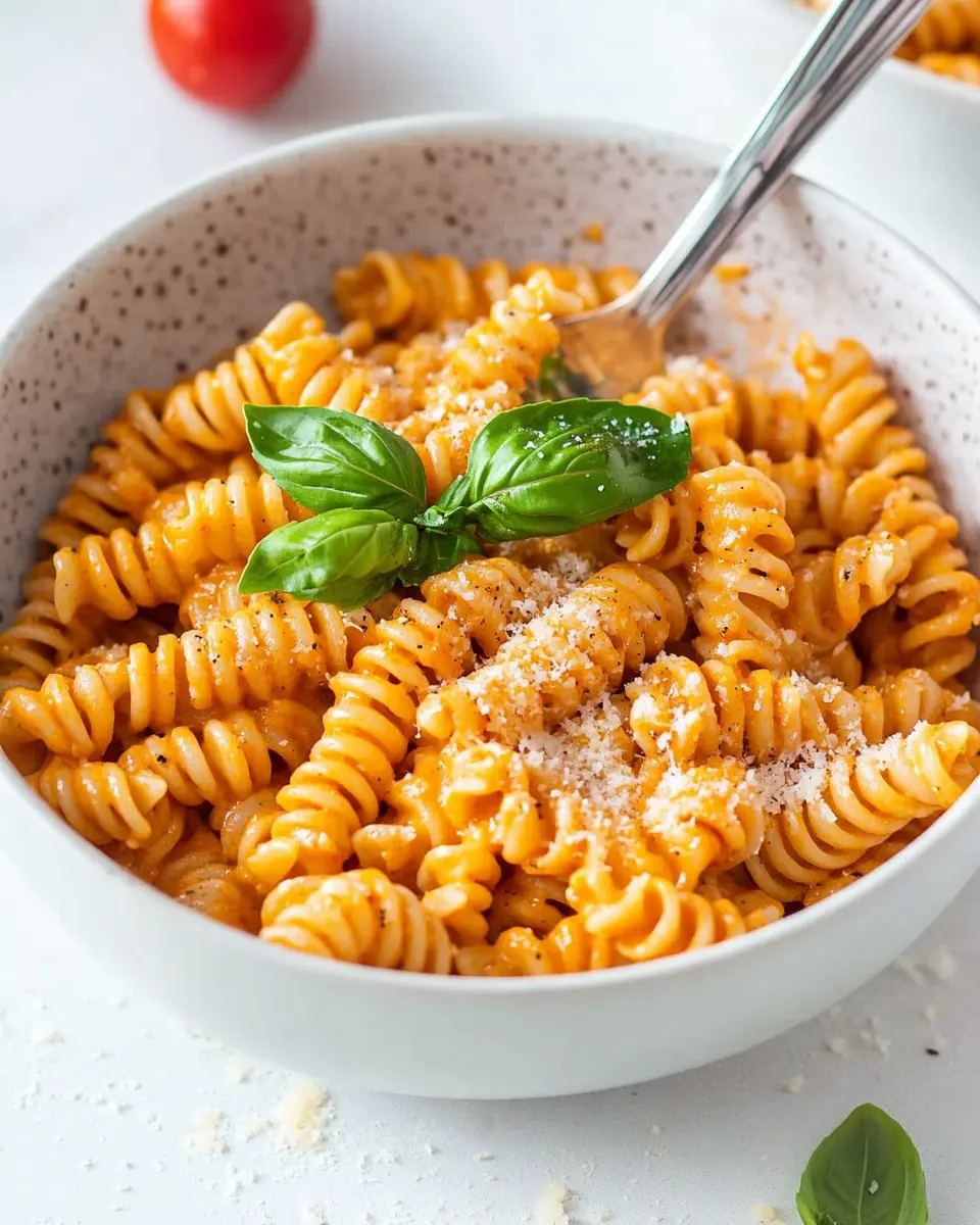 Fresh basil brightens the dish and adds a refreshing aroma, making it a perfect finishing touch. Its vibrant color and flavor enhance the visual appeal and taste of the Creamy Tomato Cottage Cheese Pasta.