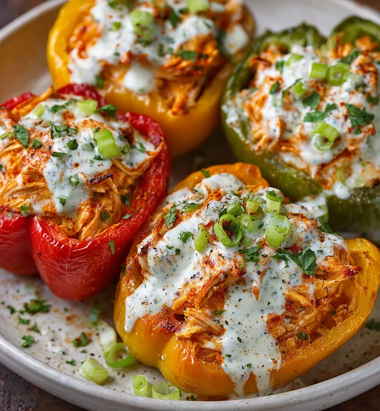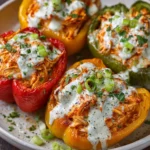 These Buffalo Chicken Stuffed Peppers are an easy weeknight win, combining a spicy buffalo chicken filling with tender bell peppers for a crowd-pleasing dish that’s fast and flavorful.