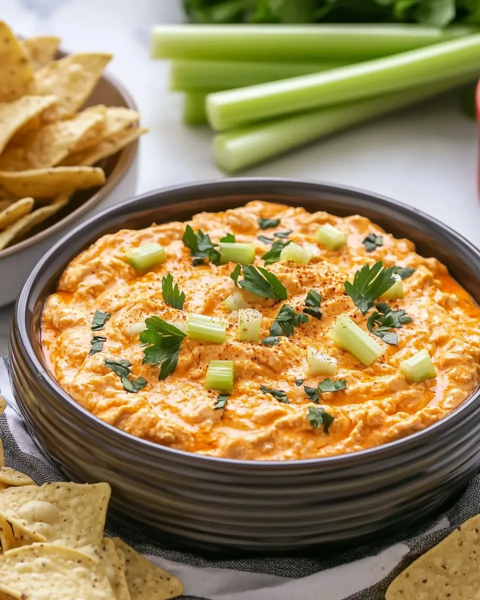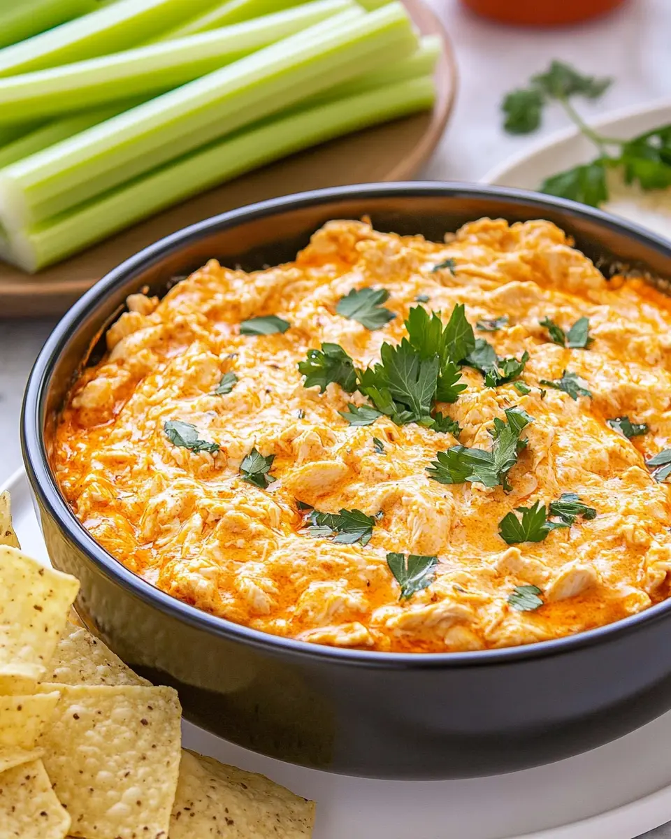 This dip balances rich, creamy flavors with a zesty kick from the buffalo sauce, making it a delightful treat. While it’s indulgent, the protein from the chicken and cheese helps to keep you feeling full, making it a great choice for gatherings. Enjoying this dip in moderation, especially when paired with fresh veggies or whole-grain crackers, can make it a delicious yet balanced appetizer.