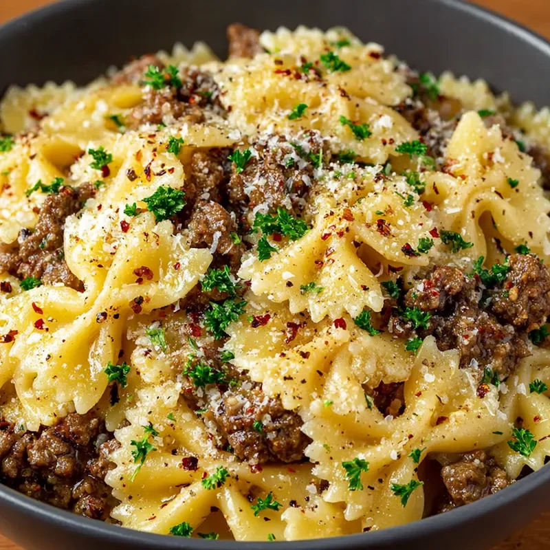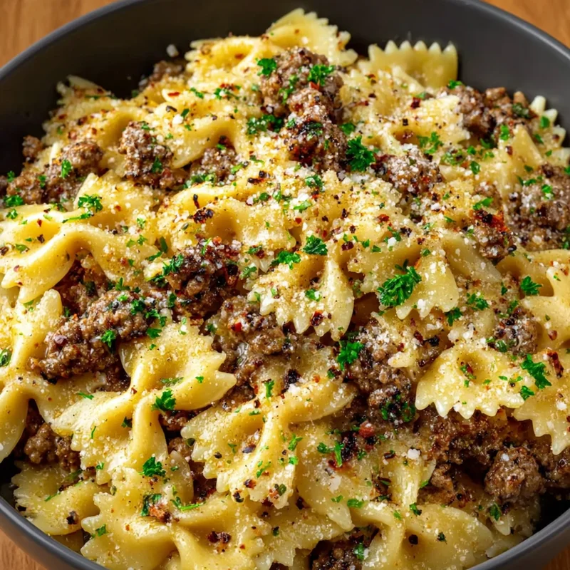 Garlic Butter Bowtie Pasta with Ground Beef
