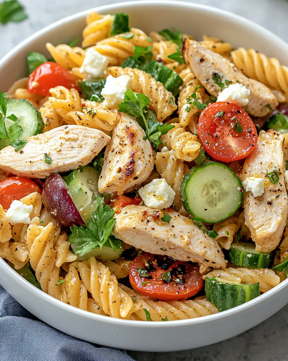 This Greek Chicken Pasta Salad is a refreshing blend of flavors, perfect for summer gatherings!