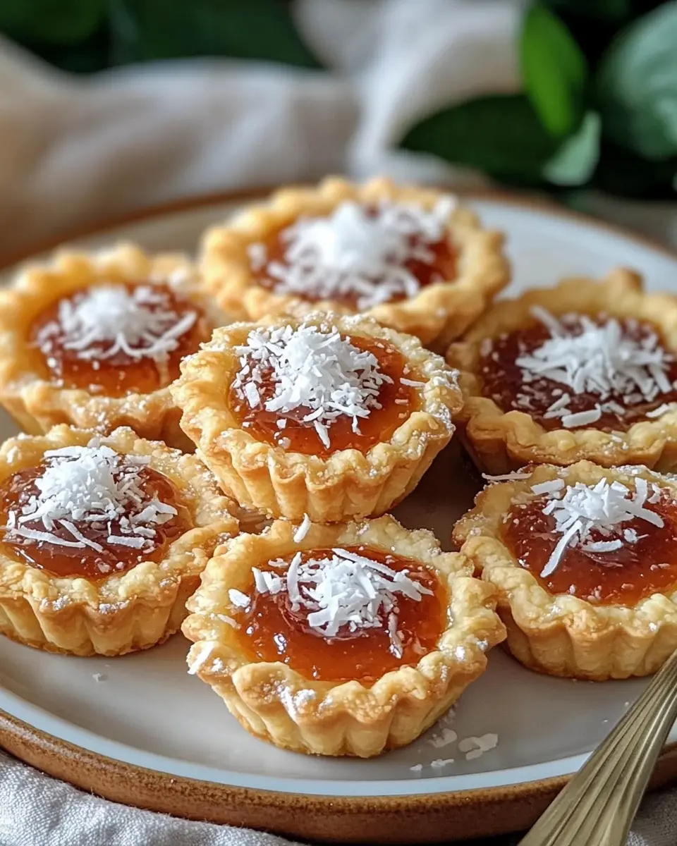 Delicious jam and coconut-filled tartlets, perfect for tea time or a sweet treat.