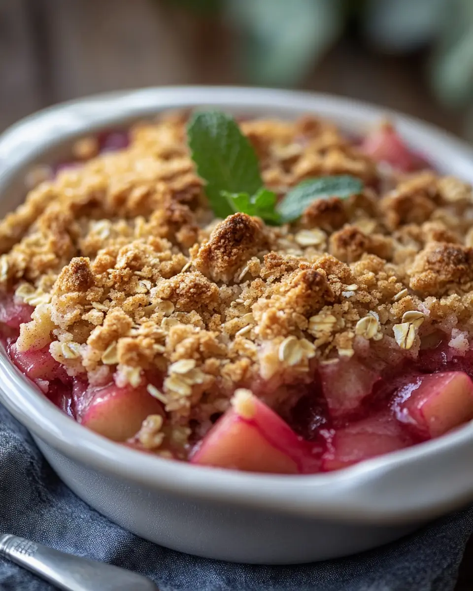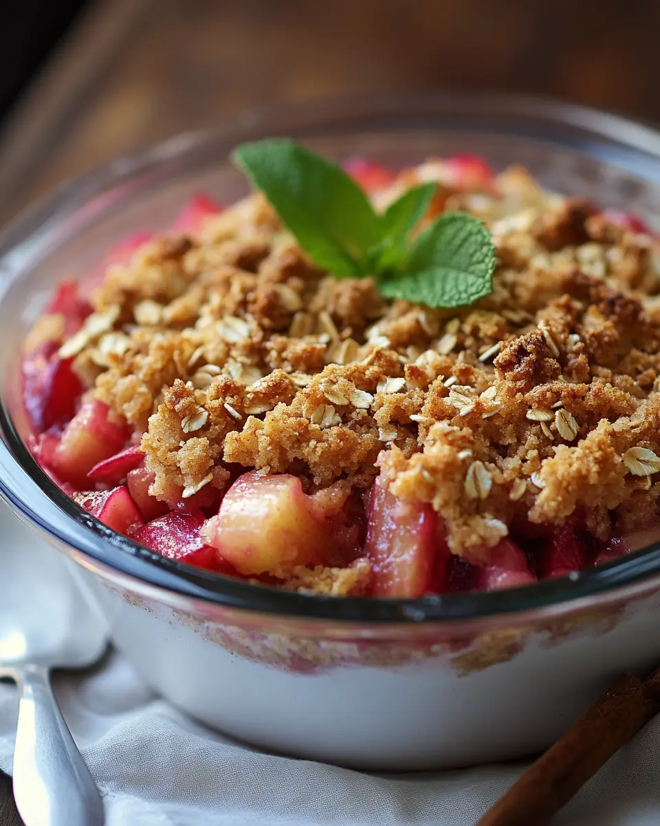 To achieve a golden, crunchy topping, ensure your butter is softened but not melted when mixing with the dry ingredients. This creates a crumbly texture that bakes beautifully. Additionally, avoid overmixing; just combine until you see the oats and sugar evenly distributed. A sprinkle of cinnamon on top before baking can also elevate the flavor profile, giving that extra warmth that complements the tart rhubarb.