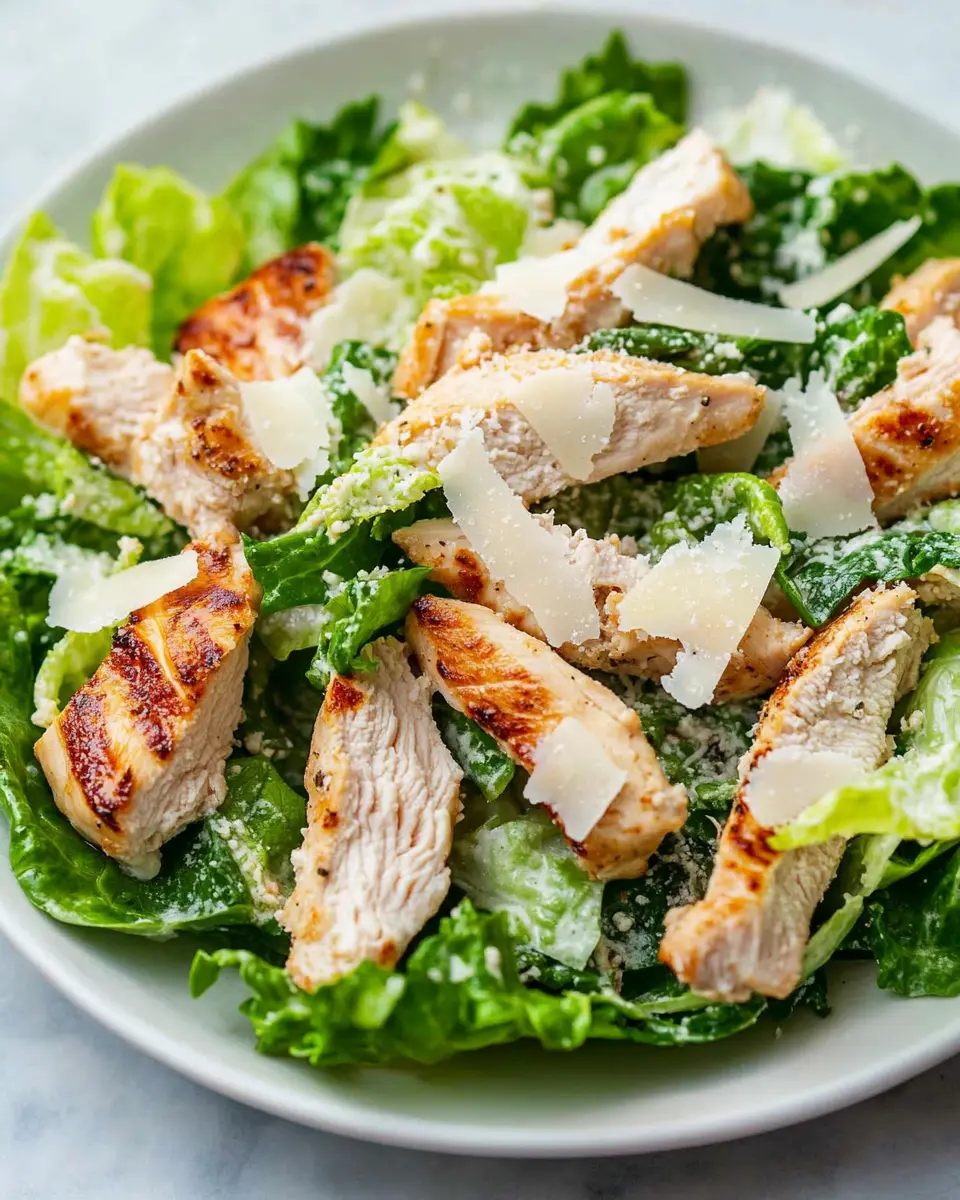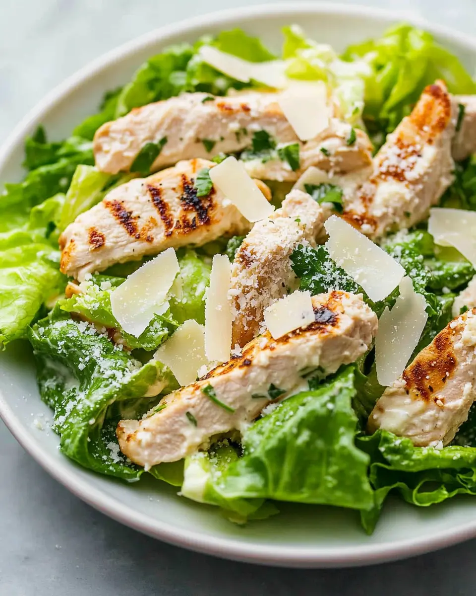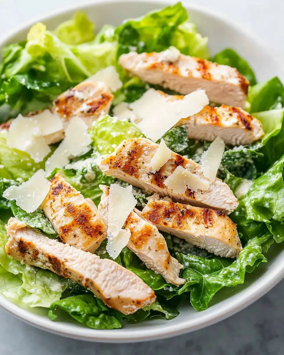 A low-carb twist on a classic Caesar salad with tender chicken, crispy romaine, and a creamy dressing.