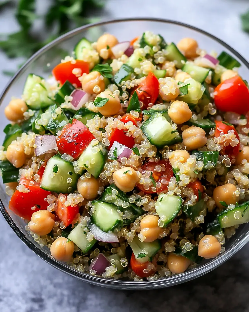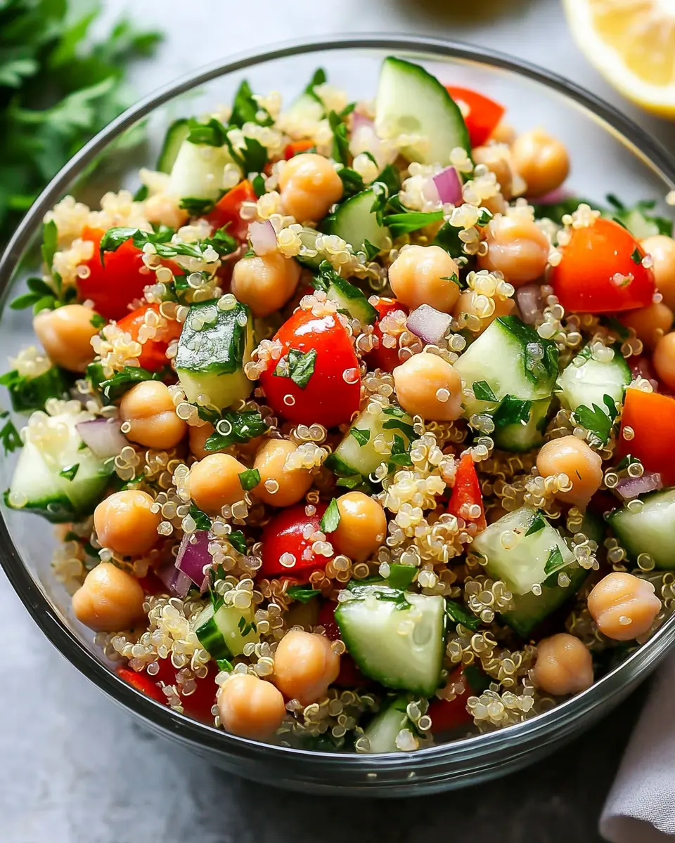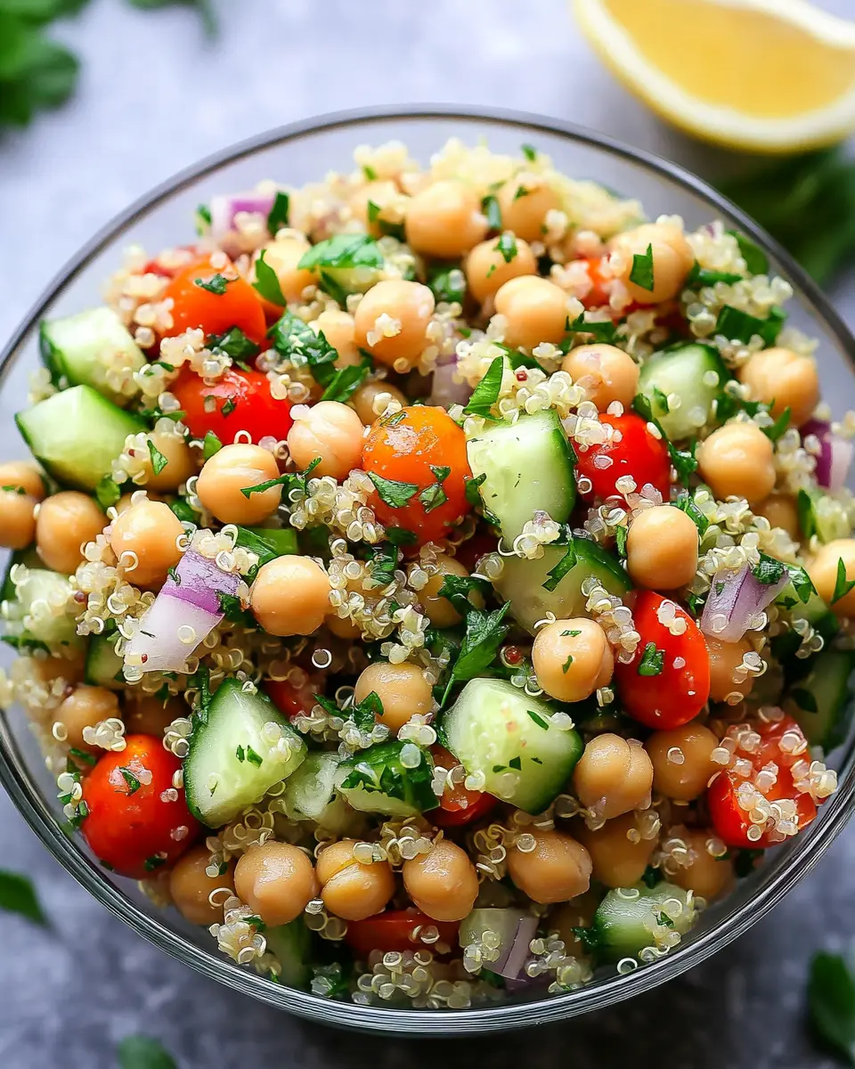 The Lemon & Herb Quinoa Chickpea Salad is a vibrant dish that combines wholesome ingredients to create a refreshing meal. With quinoa as its base, this salad features protein-packed chickpeas, crunchy cucumbers, and juicy tomatoes, all tossed in a zesty lemon and herb dressing. It’s not just a salad; it’s a celebration of flavors that invigorates your taste buds.
