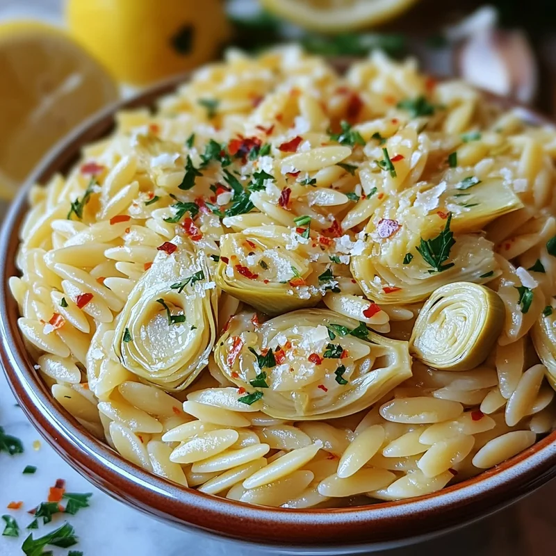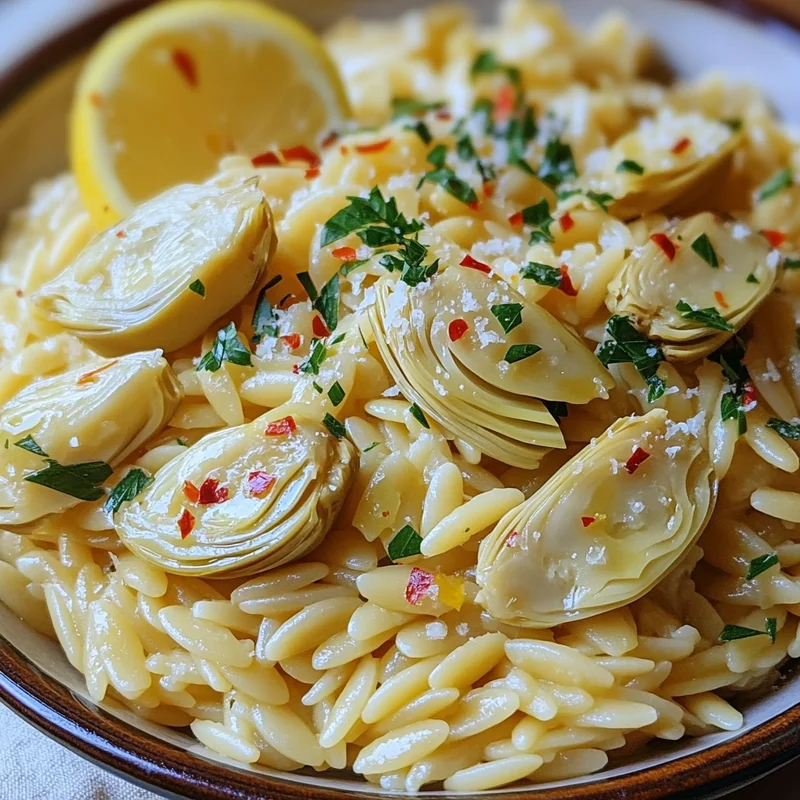 Tips for success: Don’t overcook the orzo (aim for al dente). Drain canned artichokes thoroughly. Watch the garlic carefully as it burns quickly. Use fresh parsley and lemon for best results. Always taste and adjust seasoning at the end.