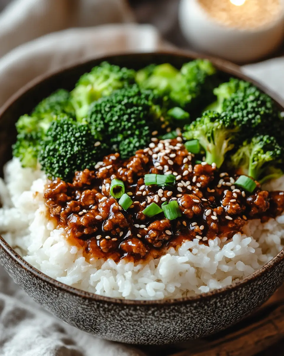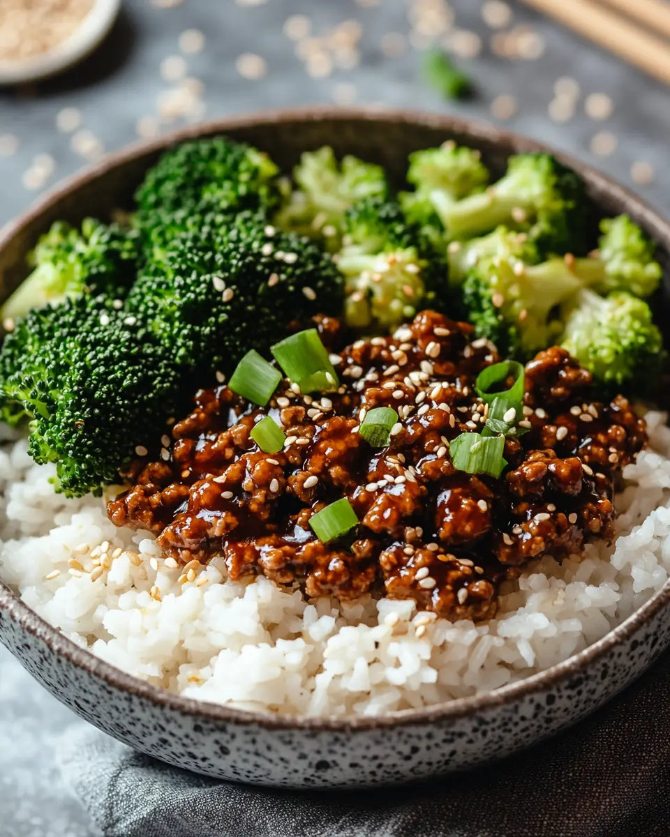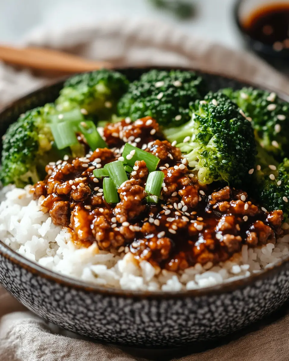 A delicious Teriyaki Ground Beef Bowl with Broccoli, perfect for a quick weeknight dinner.